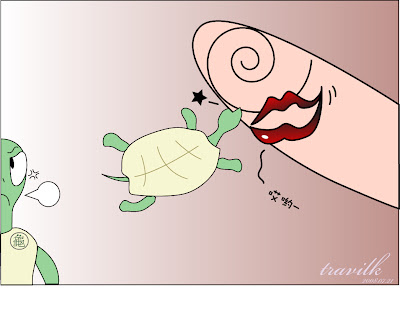 後來看自己的食指,的確有個小小尖尖的印子,想起來真好笑,雖然是被小烏龜咬了,(不會是在抗議水缸太小吧XD)但想起來還是滿可愛的